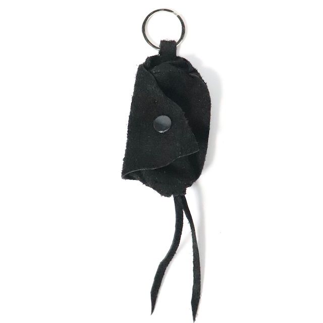 "COINCASE" LEATHER BLACK SUEDE ラムレザーのようなしなやかさと柔らかさを兼ね備えた牛革"ラムライク"で作成したレザーの2wayコインケースです。 スナップボタンの留め位置により収納部分のサイズ変更が可能です。 *写真5枚目以降は着用例です。 SIZE: 最小サイズ 縦10cm(フリンジ含まない)幅5.5 最大サイズ 縦10.幅7マチ4 素材:牛革 ATTENTION 本製品は天然皮革を使用しております。素材の特性上、傷・シワ・血筋・部位による厚みや質感の差が見られる場合がございますが、天然素材ならではの風合いとしてお楽しみください。 皮革は水分・汗・摩擦により色落ちや色移りが生じる場合がございます。特に白色・淡色の衣類や布製品との併用、長時間の接触は色移りの原因となる可能性がございますのでご注意ください。 雨天時や汗などにより革が湿った状態でのご使用は色移りの原因となる場合がございます。 革の裏面(床面)は起毛素材のため、細かな繊維が付着する場合がございます。 お手入れの際は無色の本革専用クリームをご使用ください。濡れた場合は乾いた布で水分を拭き取り、形を整えて陰干ししてください。保管の際は高温多湿・直射日光を避けてください。 商品写真はできる限り実物の色に近づけるよう徹底しておりますが、 お使いのモニター設定、お部屋の照明等により実際の商品と色味が異なる場合がございます。 お客さまのご都合による、返品・キャンセルはお受けできません。予めご了承の程お願い致します。