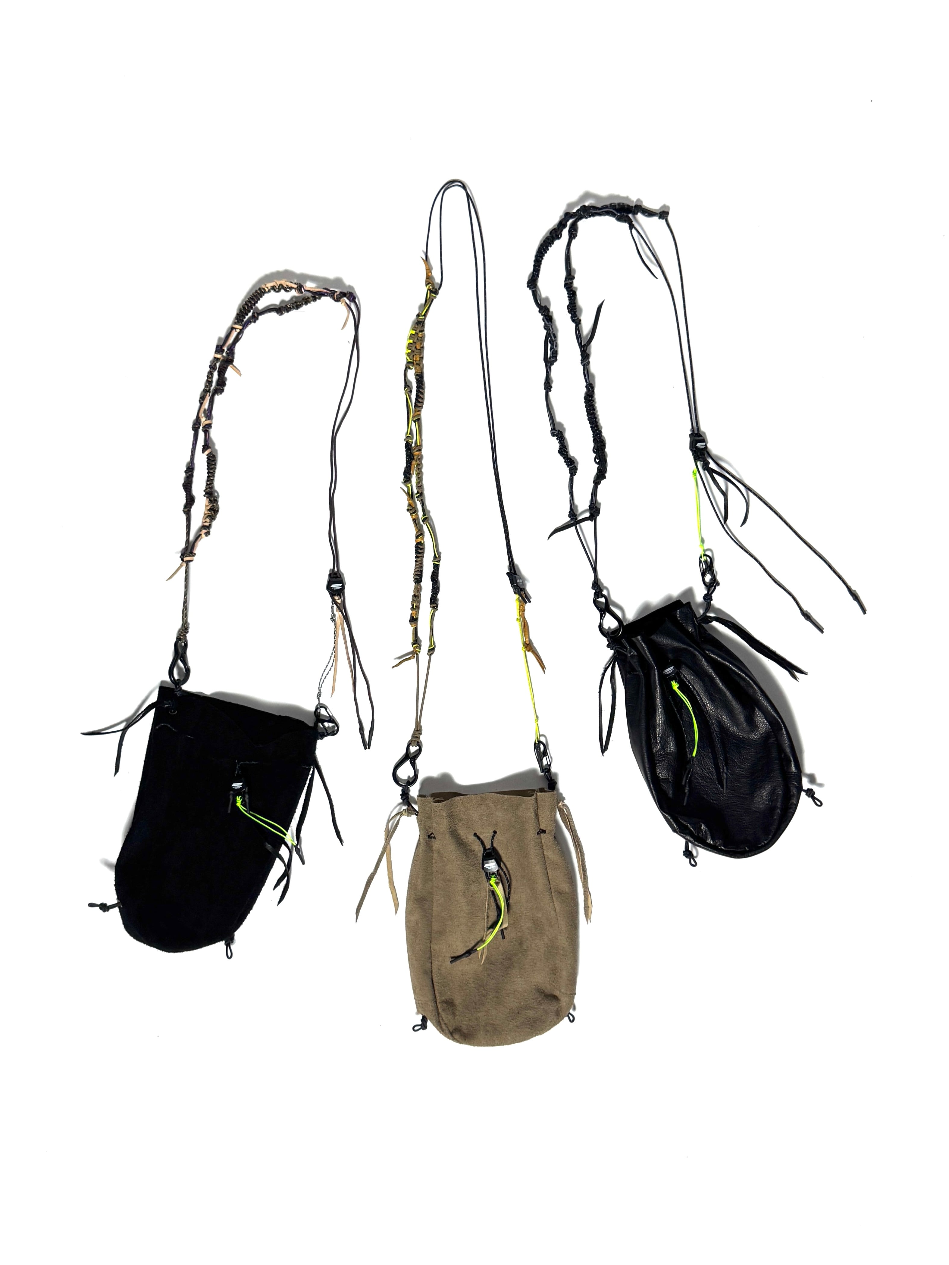 単体でも付属の紐でショルダーバッグとしてお使い頂けますが、"ROPE"にジョイント可能でカラビナの付け位置によって持ち方を変える事が可能です。