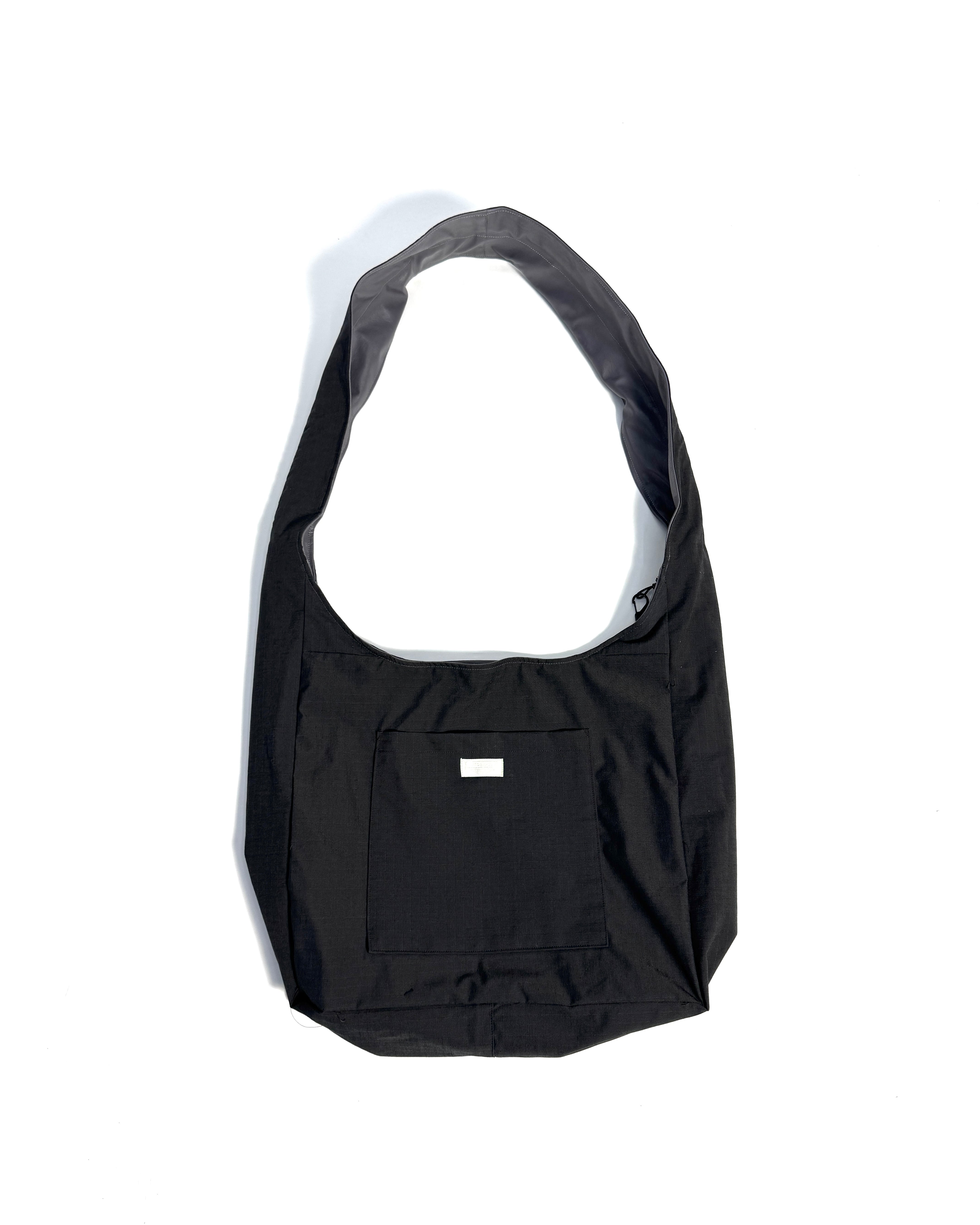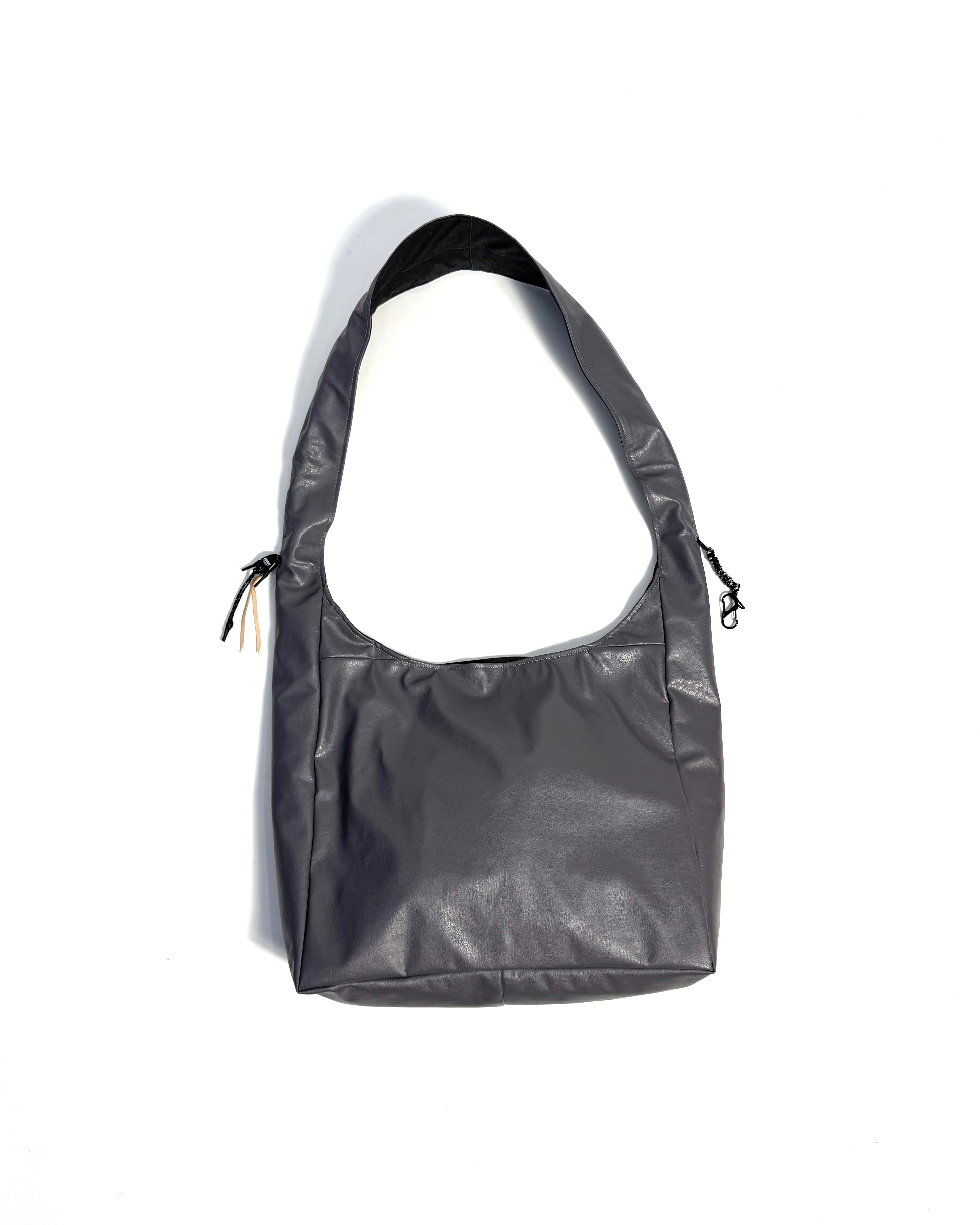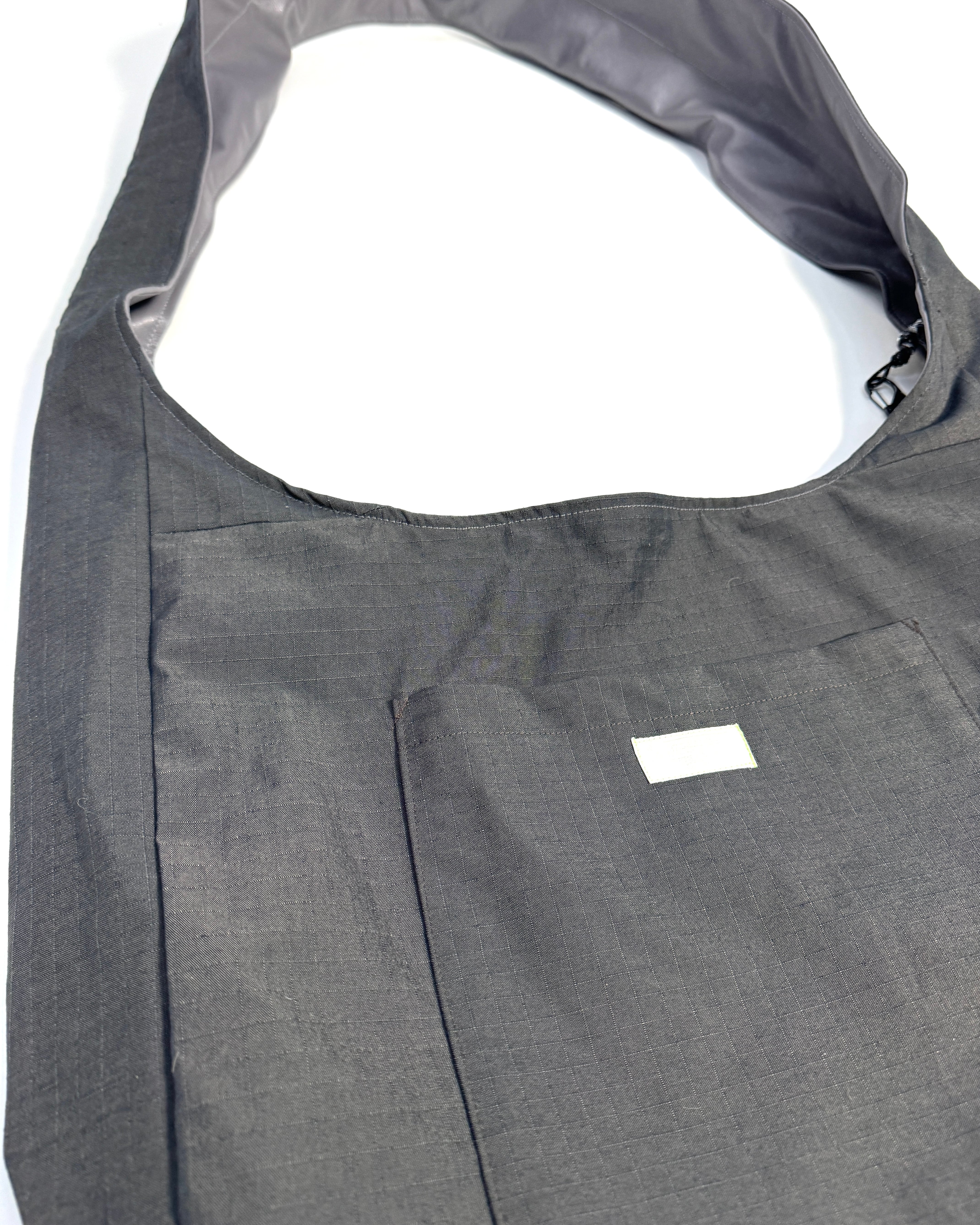 デッドストックファブリックを使用した大容量のショルダーバッグ。