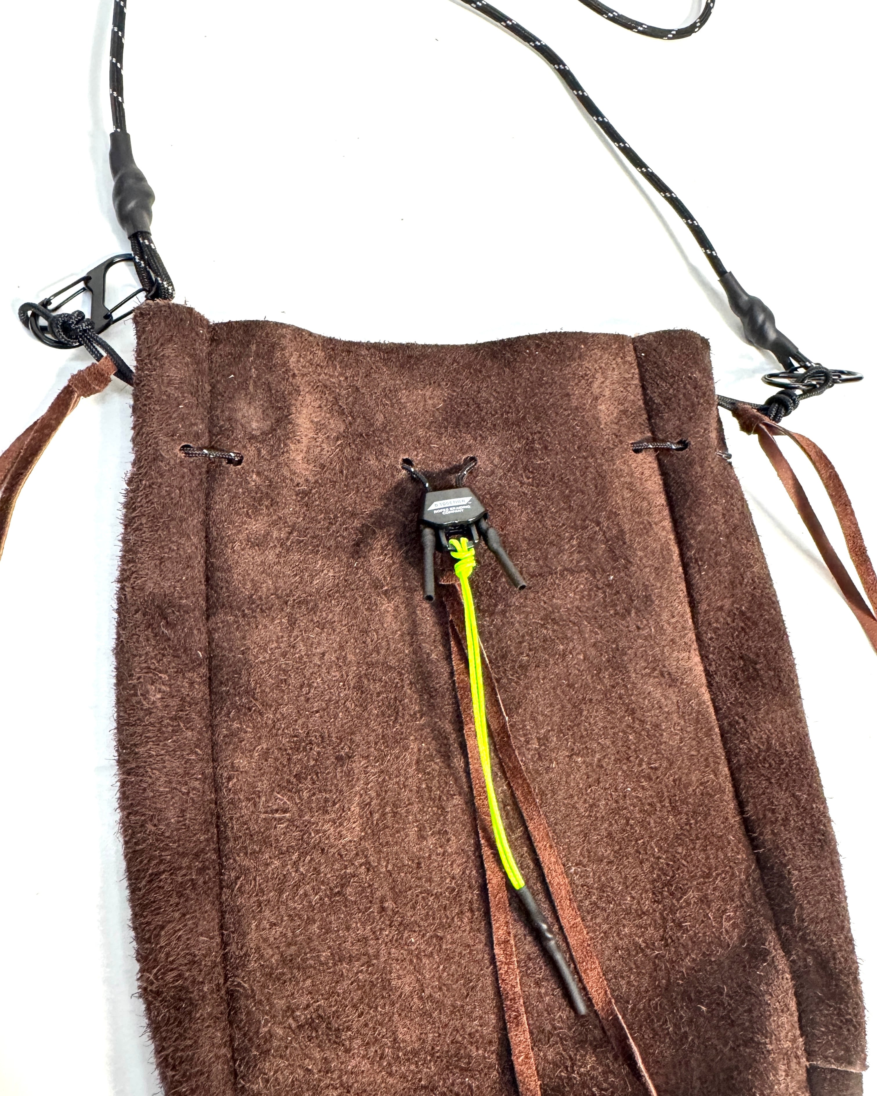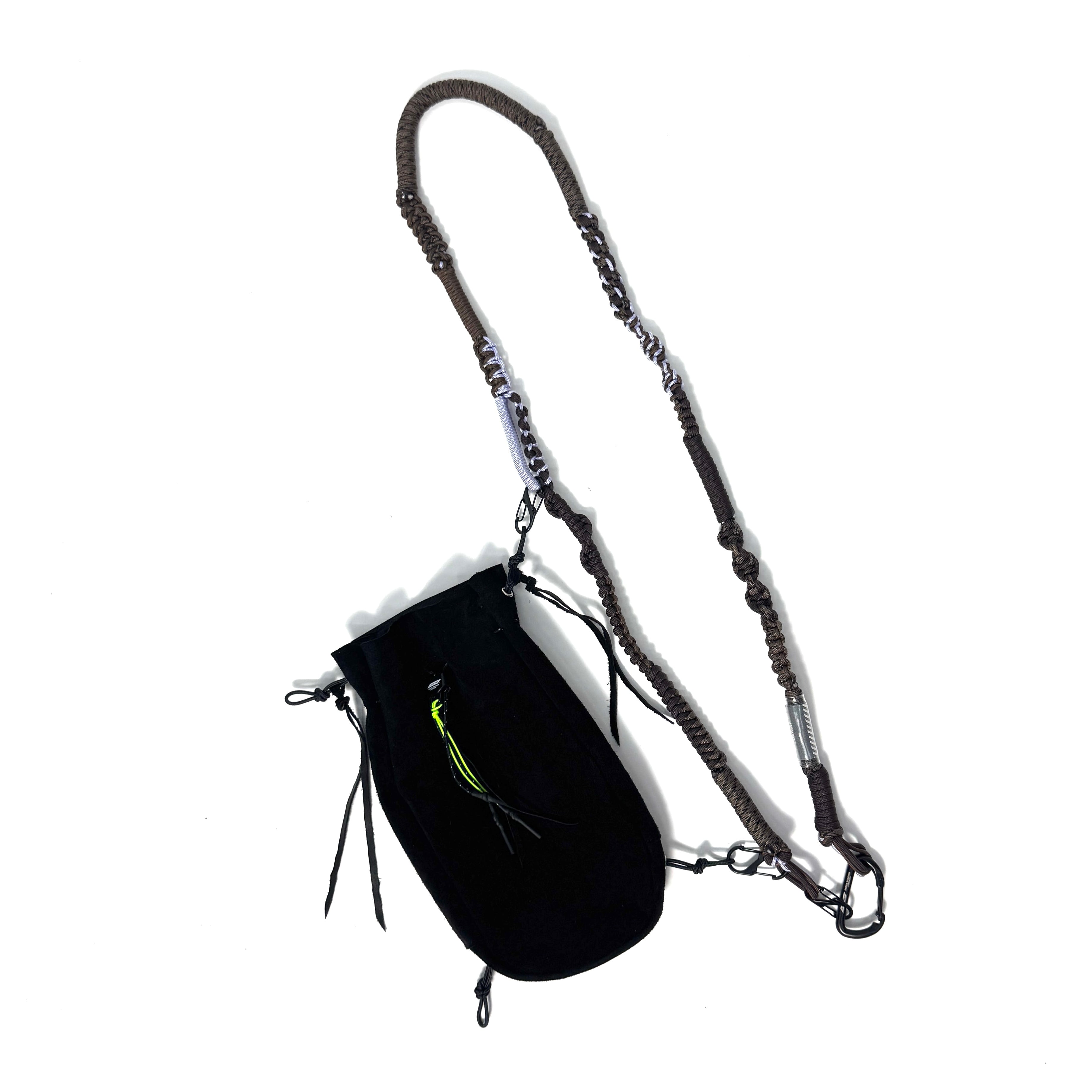単体でも付属の紐でショルダーバッグとしてお使い頂けますが、"ROPE"にジョイント可能でカラビナの付け位置によって持ち方を変える事が可能です。
