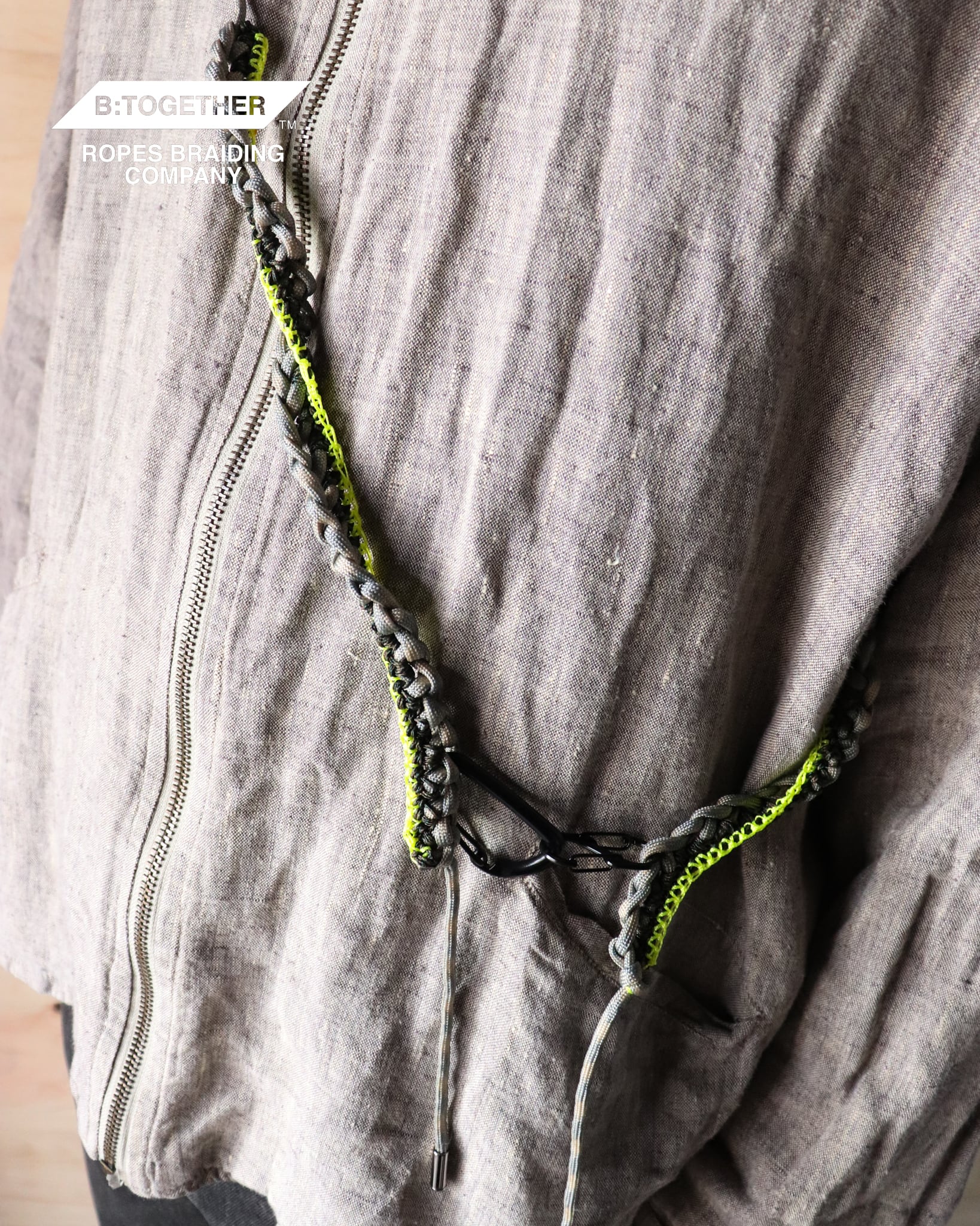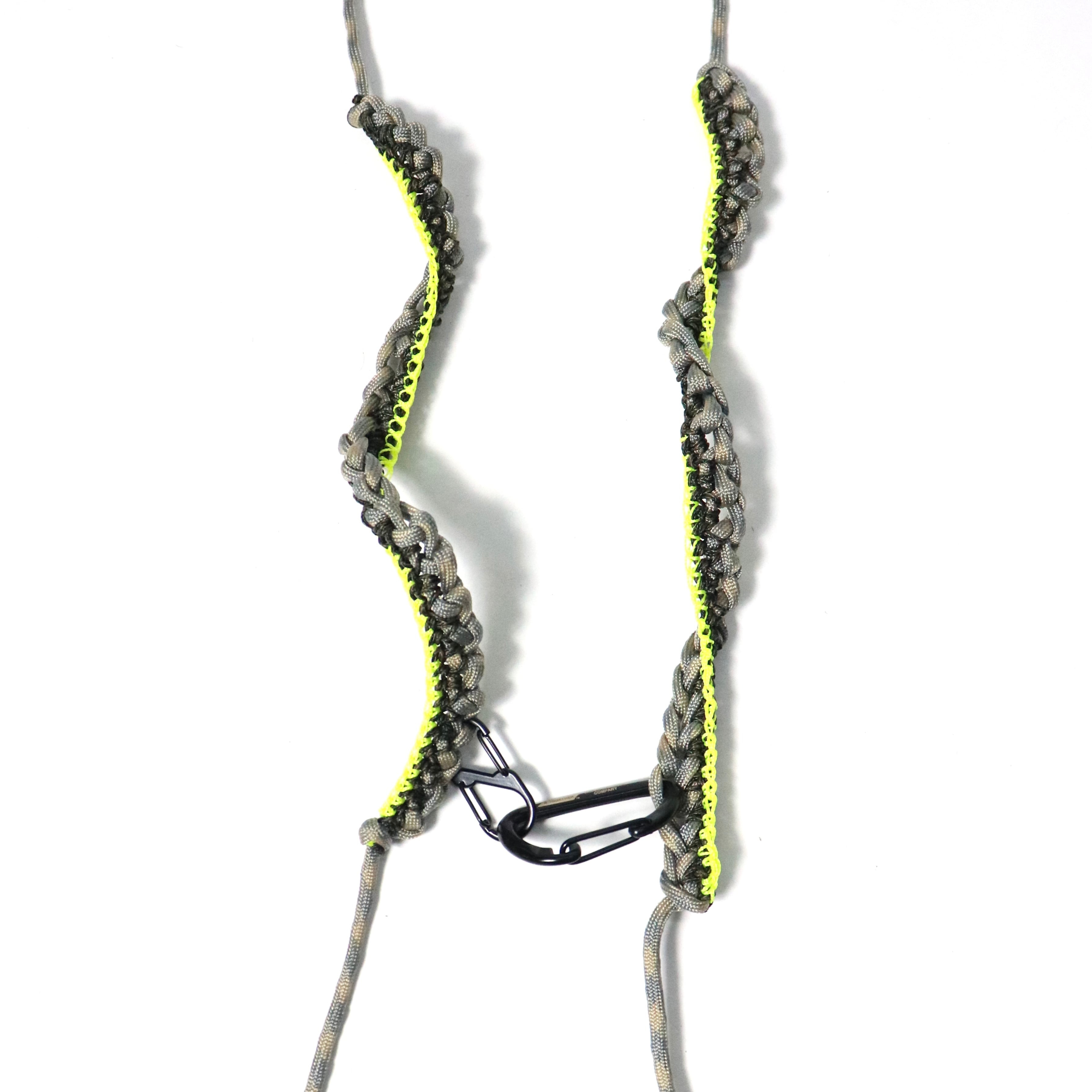 パラコードを様々な配色と編み方、そしてかぎ針編みを混ぜて1本のストラップに仕上げた、”CROCHET ROPE" 。