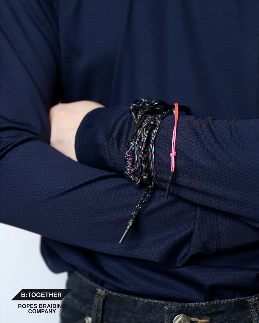 ナイロンのパラコードを様々な配色と編み方で1本のストラップに仕上げた、”NARROW ROPE" 。