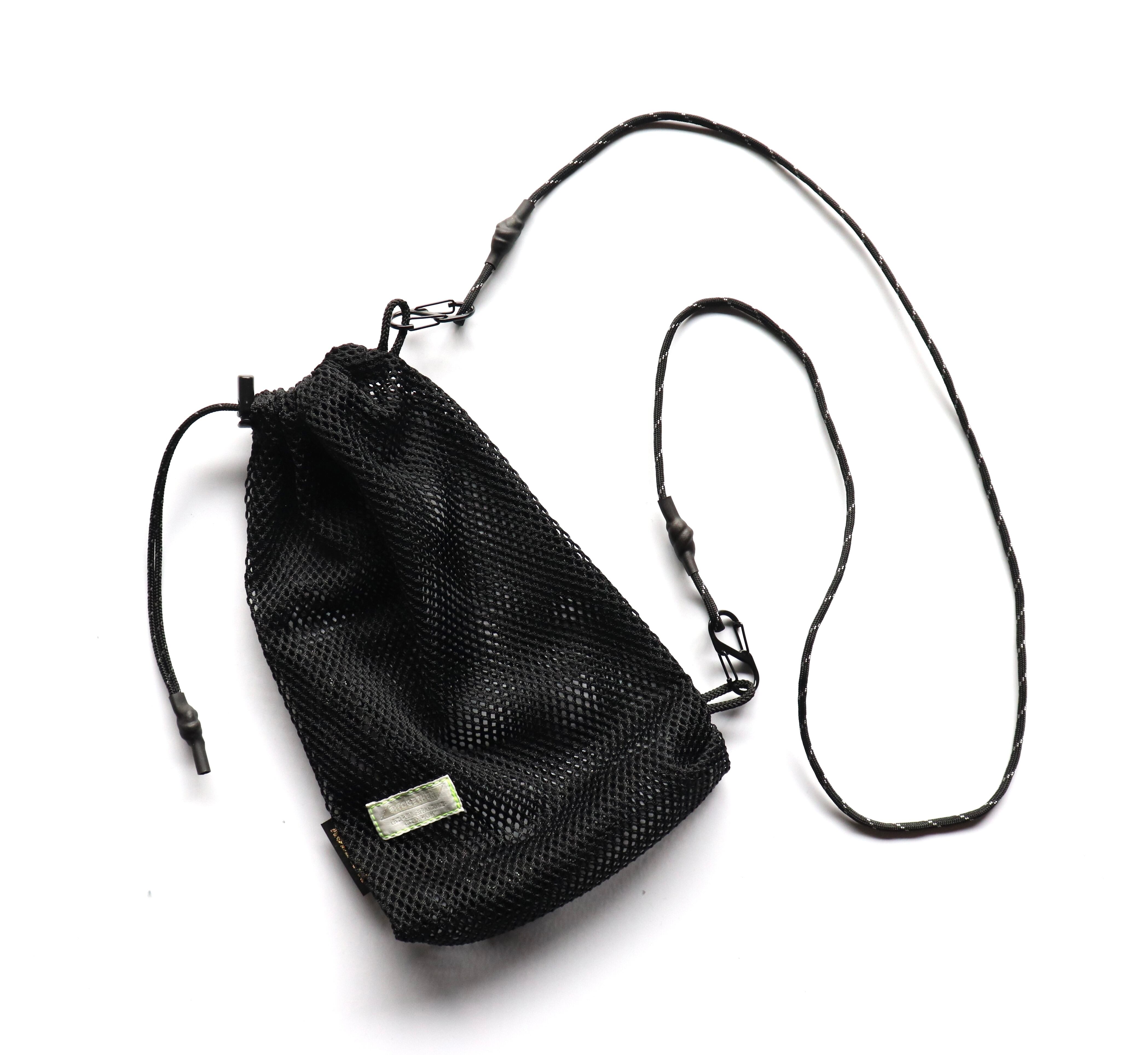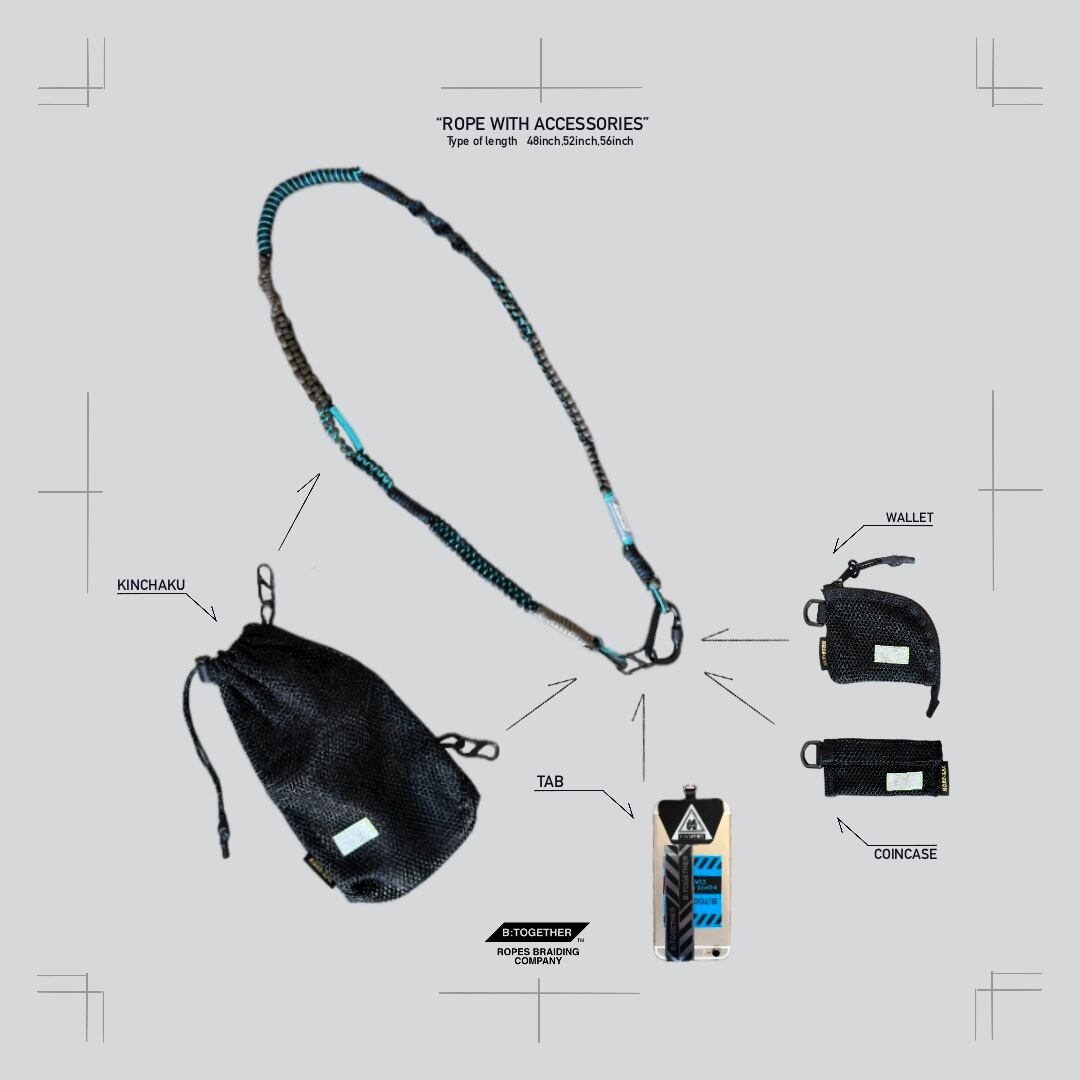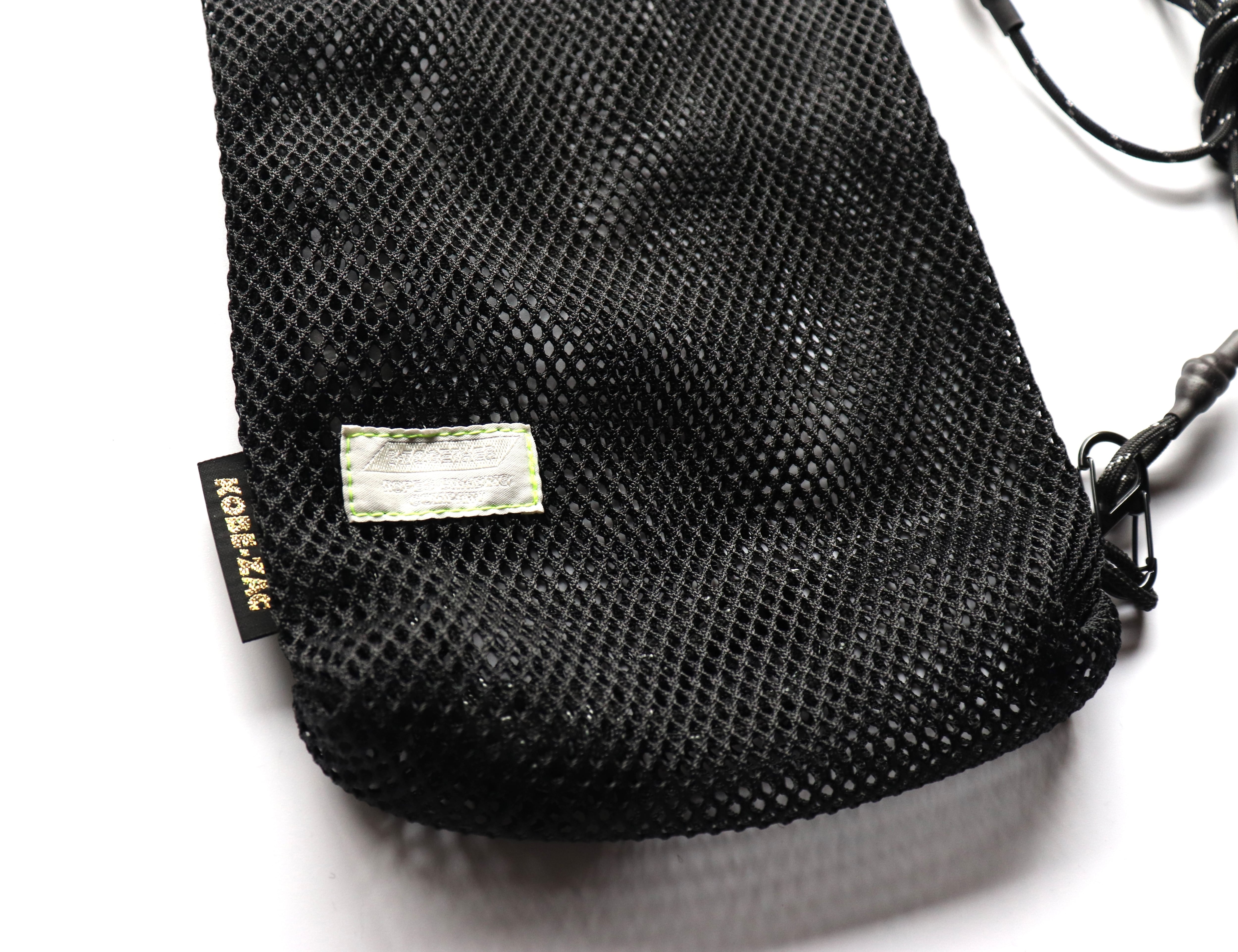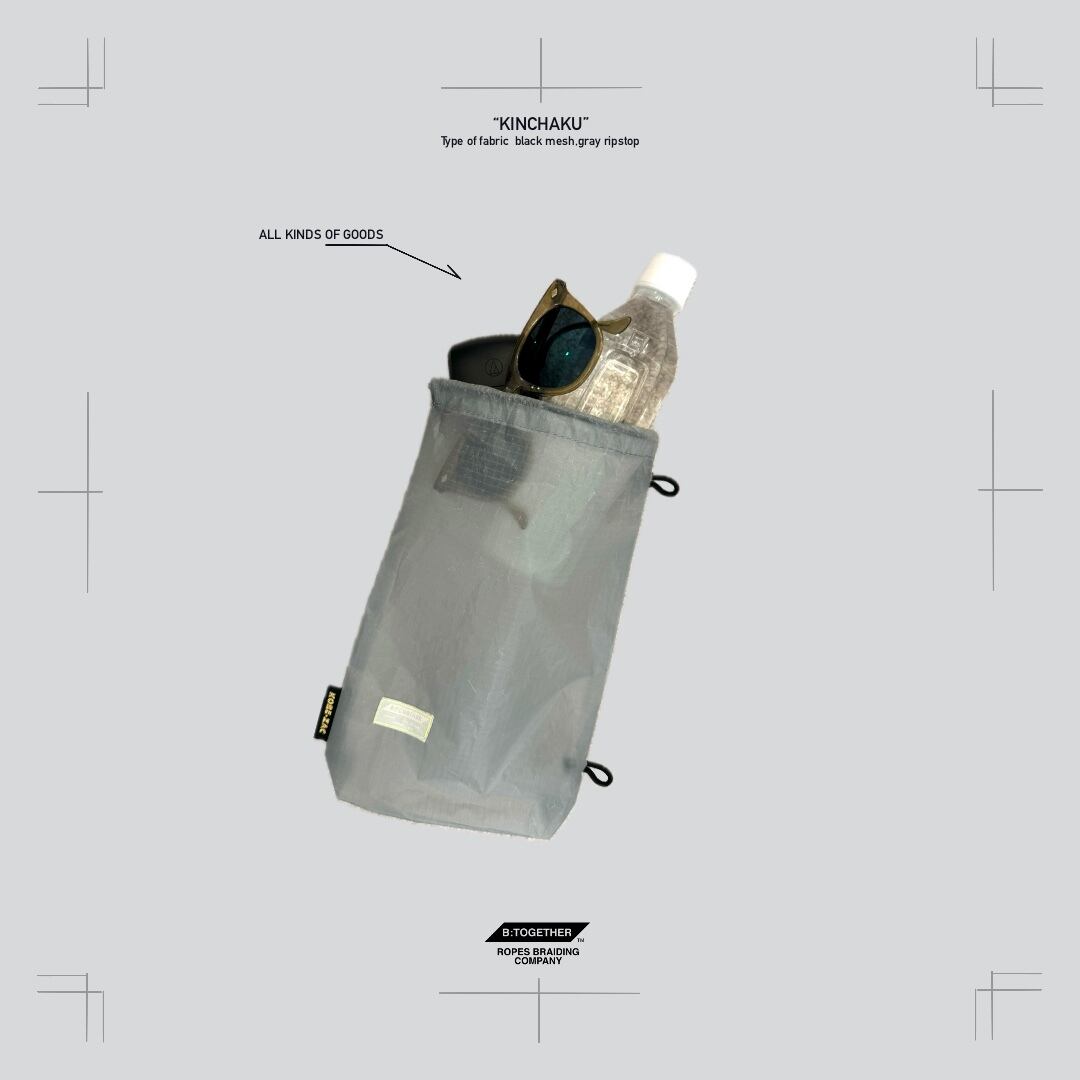 神戸ザック製の"KINCHAKU"は付属のコードでショルダーバッグとして使って頂ける他、別売りの"ROPE"に付けていただく事ができます。