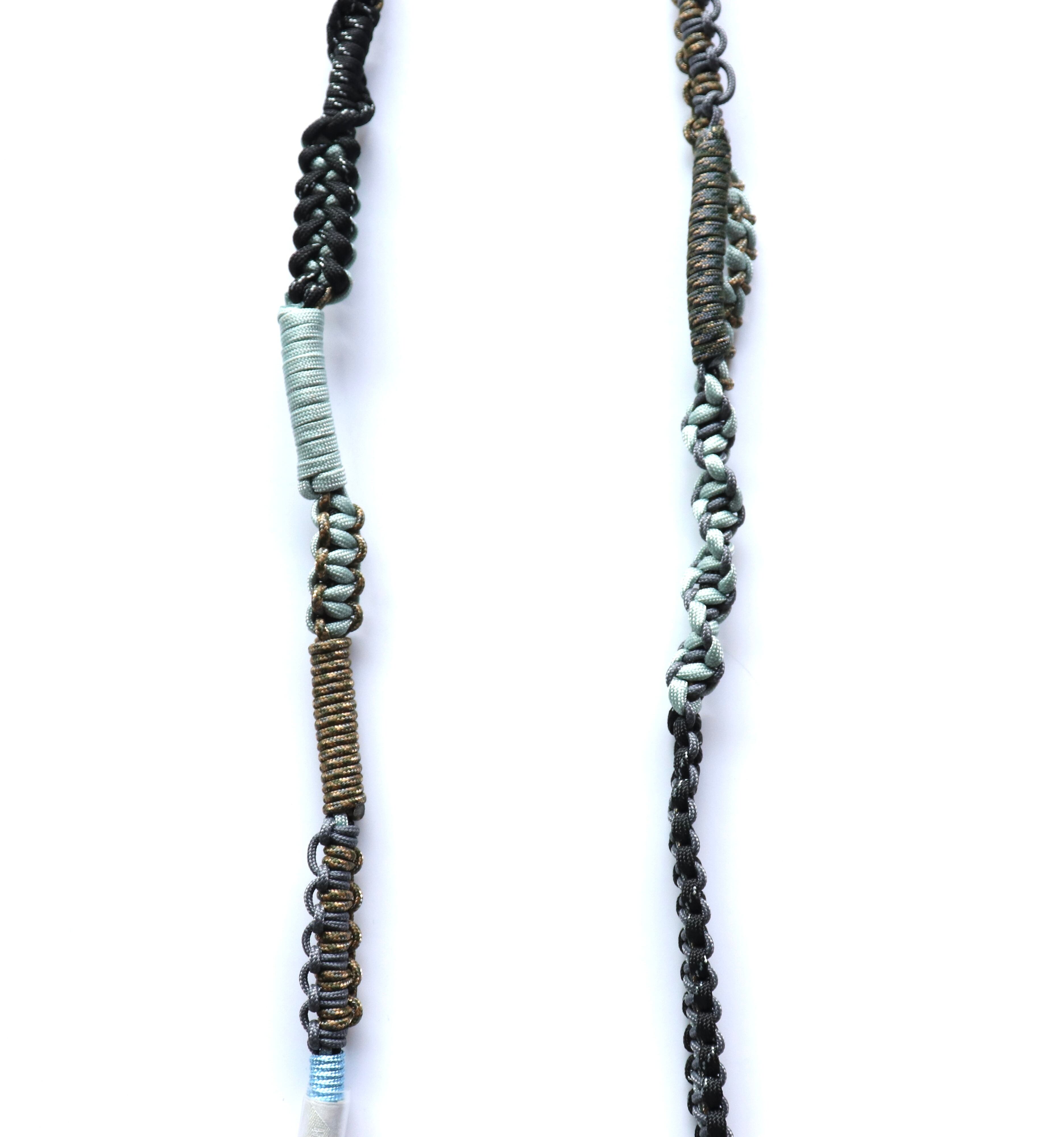 ナイロンのパラコードを様々な配色と編み方で1本のストラップに仕上げた、”ROPE" 。